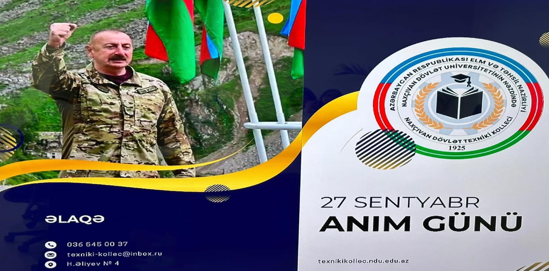 27 Sentyabr – Anım Günü münasibətilə Naxçıvan Dövlət Universitetinin nəzdində Naxçıvan Dövlət Texniki…